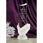 Product: Crystal Trophy CA-I038; ProductSerial:CA-I038; Shape: Irregular; Size (cm): 32.1; Color: Transparent; Material: K9 Crystal; Printing Method: Sandblasting; Packaging Method: Gift Box Packaging; Notes: The final price is subject to the quotation