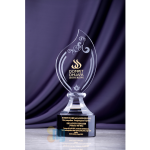 Product: Crystal Trophy CA-L007;ProductSerial:CA-L007; Shape: Leaf Shape; Size (cm): 18; Color: Transparent; Material: K9 Crystal; Printing Method: Sandblasting; Packaging Method: Gift Box Packaging; Notes: The final price is subject to the quotation