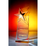 Product: Crystal Trophy CA-ST048; ProductSerial: CA-ST048; Shape: stars; Size (cm): 24; Color: transparent; Material: K9 crystal; Printing method: sandblasting; Packaging method: gift box bag Package; Note: The final pricing is based on the quotation.
